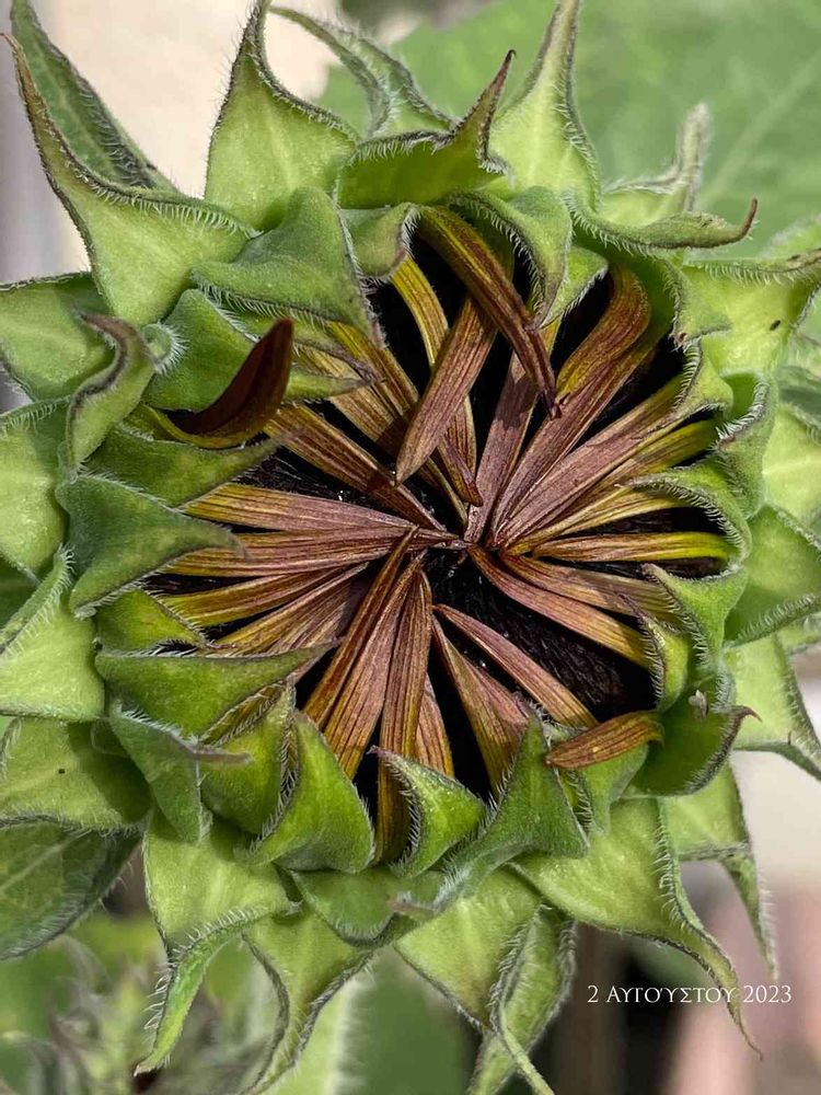 普通のヒマワリ、背丈があまりに大きすぎて💦 この子はちょうどいい高さで育ってくれて、色も好きなので種取りして毎年植えることにしています🙂