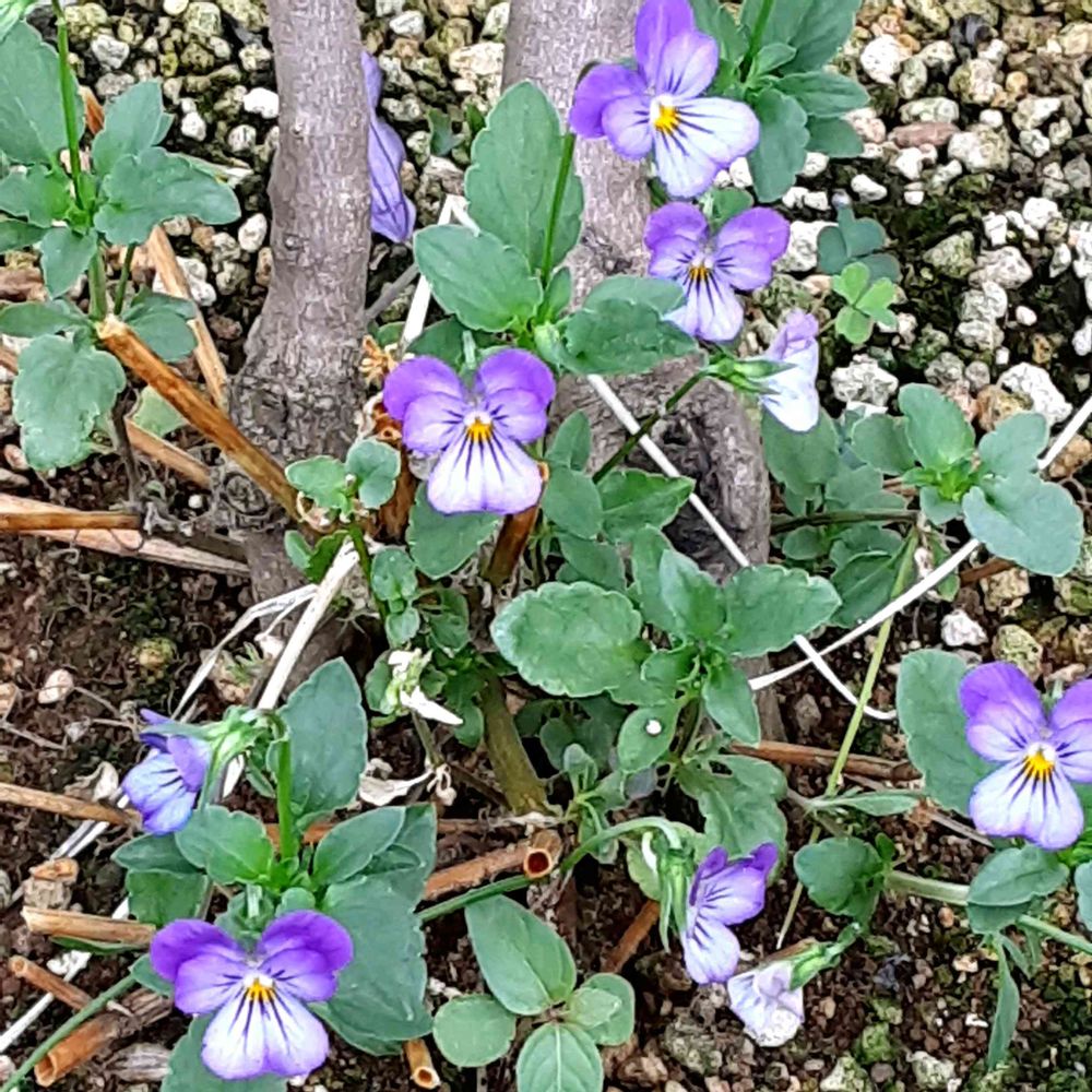 元々、こぼれ種で普通の大きさのビオラが咲いて、それはもう花後に全部抜いたんですが、その花のまたまたこぼれ種で赤ちゃんビオラが咲いたようです🎶