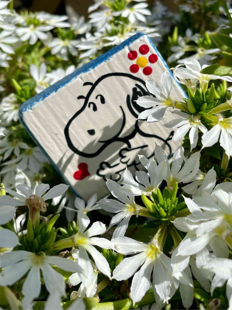 可愛らしいお花にスヌさん嬉しそうだね❤️❤️❤️