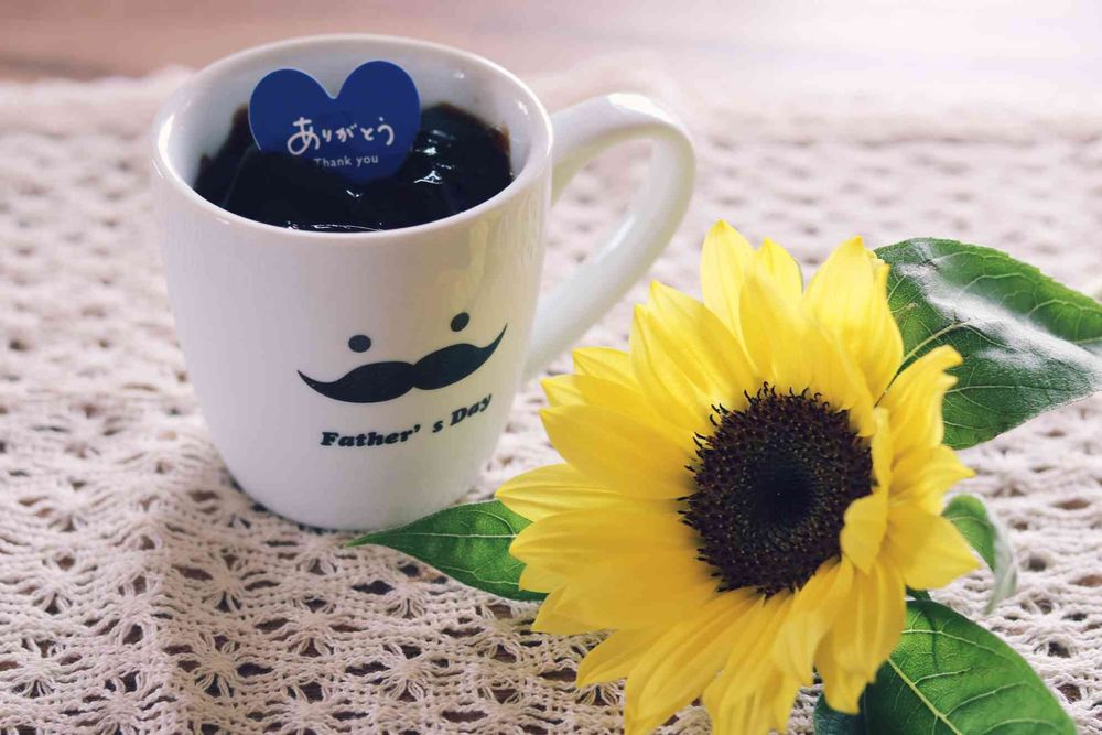 今日は父の日なので黄色いお花、ひまわり🌸とほろ苦いコーヒーゼリー🎶
