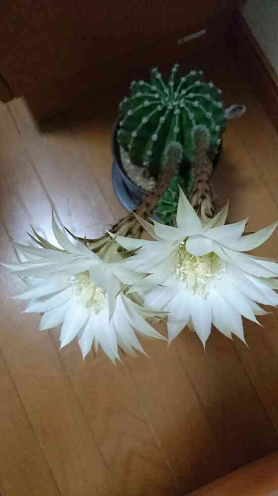 去年友人から頂いたサボテンに花が2つ咲きました❗おっきな花が咲いて感激❇