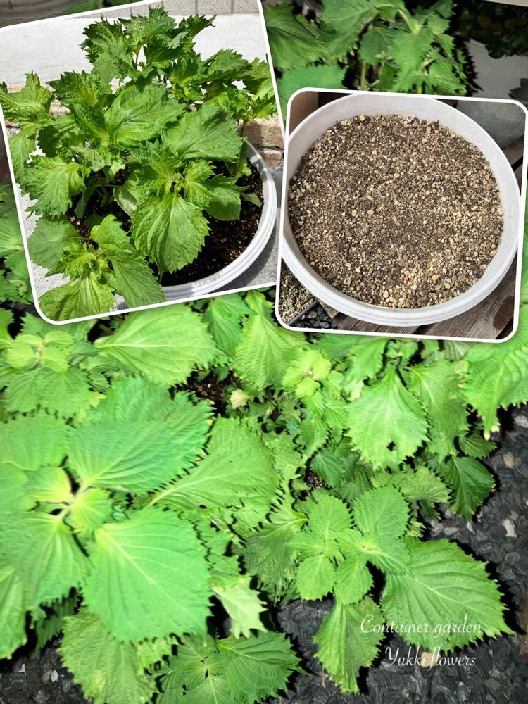 ⬅️左、5月14日母の日に義母へプレゼントしたシソ