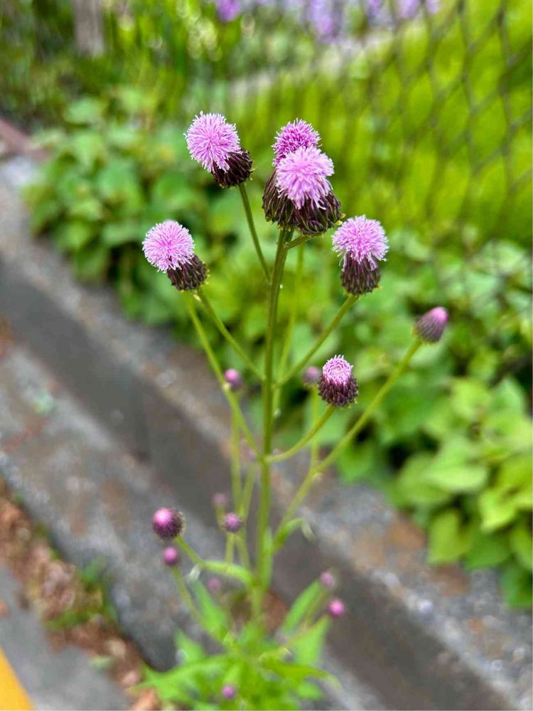 今日のお花🏷𓈒𓏸︎︎︎︎アザミ。今年は大小硬軟取り混ぜていろいろなアザミ🌸に出会い中です。この子🩷🦊アザミは買い出しの帰り道、公道の縁石の隙間から咲いていました。