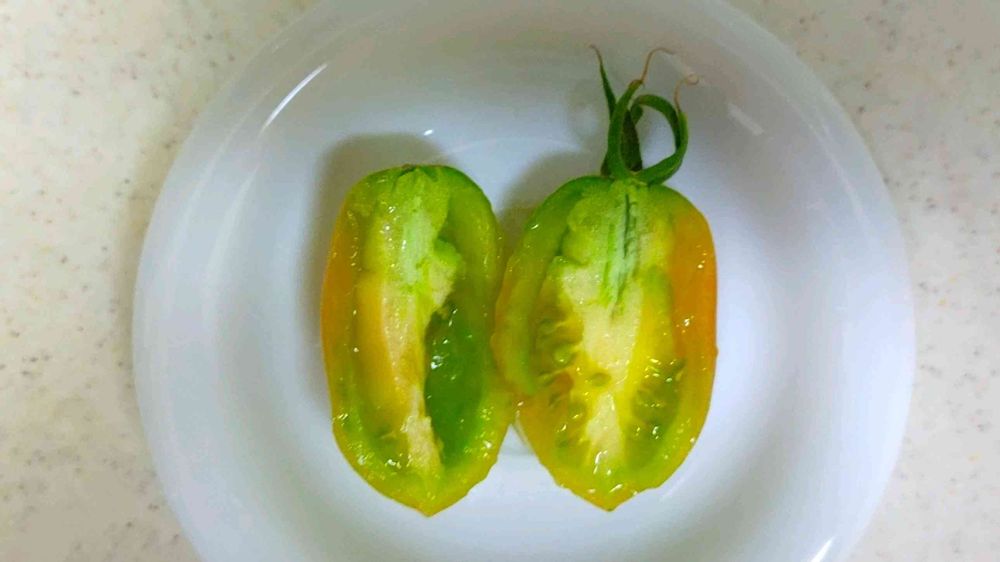 謎のトマト🍅が割れていたので、手で半分に割ってみました❗️