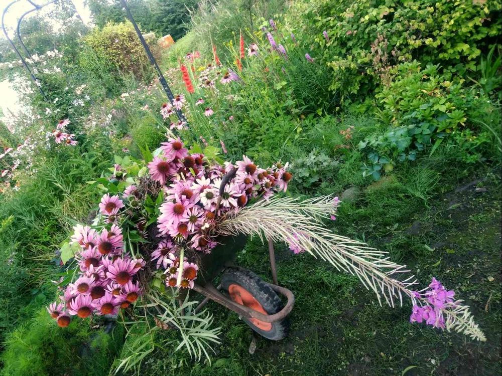 一輪車とエキナセアが素敵な雰囲気を醸し出していますね〜🌸🌸