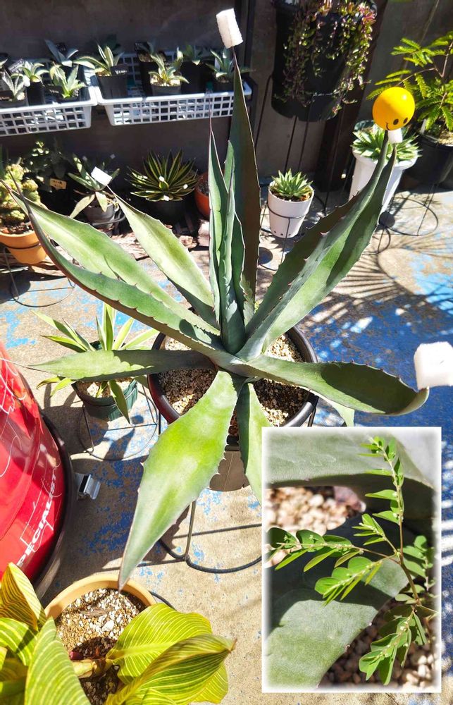 後ろのアガベちゃん達は子株をポットで育成してたり、譲って頂いた子達なんです😊