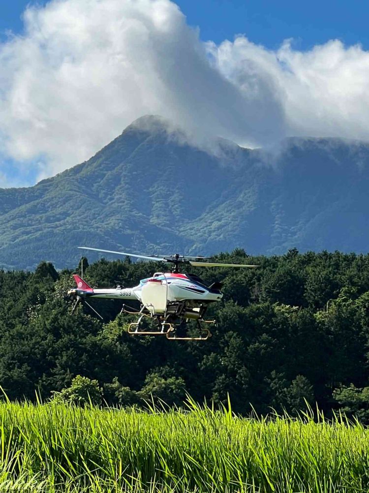さん小山町の田園地帯なので、ヘリコプターのドローン大活躍です