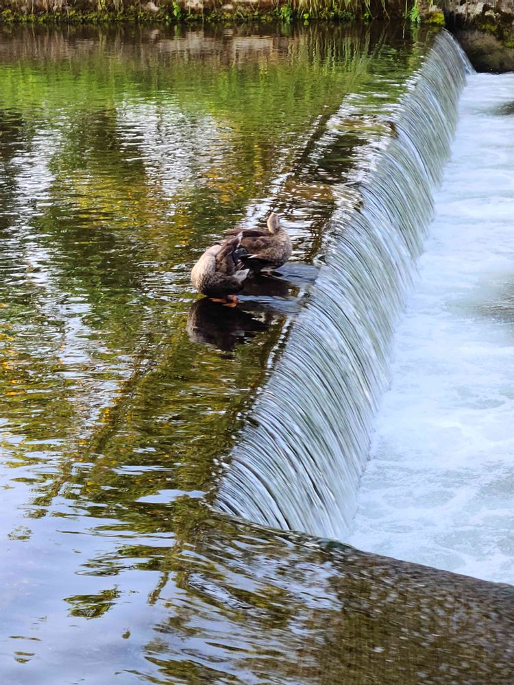 軽井沢御影用水沿いの道をワンコと散歩中見つけた鴨達🐦️