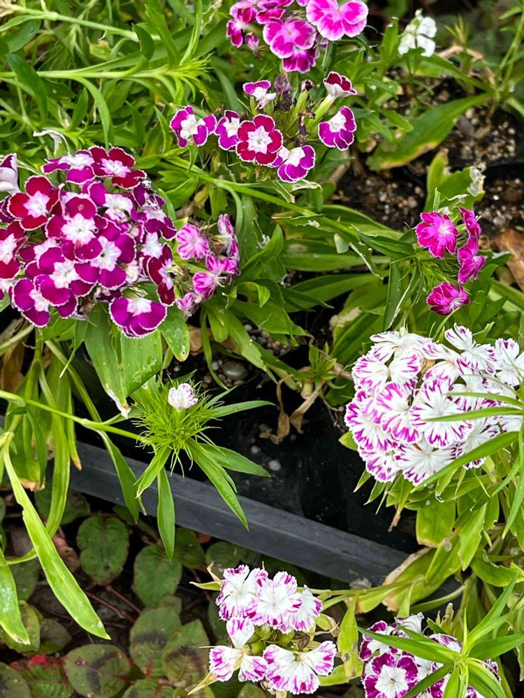 ダイアンサス ホランディアパープルクラウン💗🤍💗どういう訳か咲き続けております😲草丈は短く切花としては…うーん… 使えない…かなぁ😳