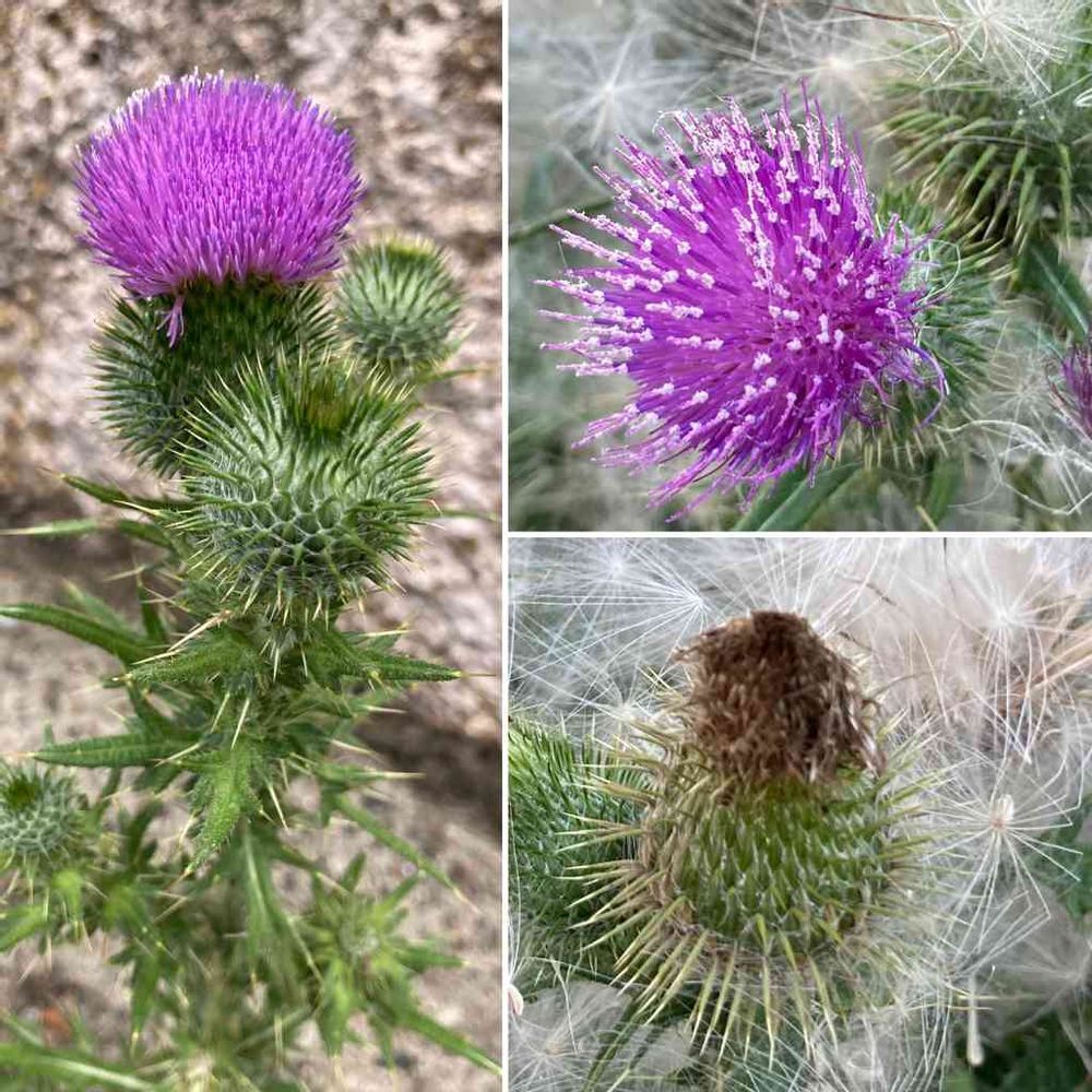 散歩道でよくみかけるようになった 外来品種のアメリカオニアザミです。 種を沢山飛ばし繁殖力強そう!