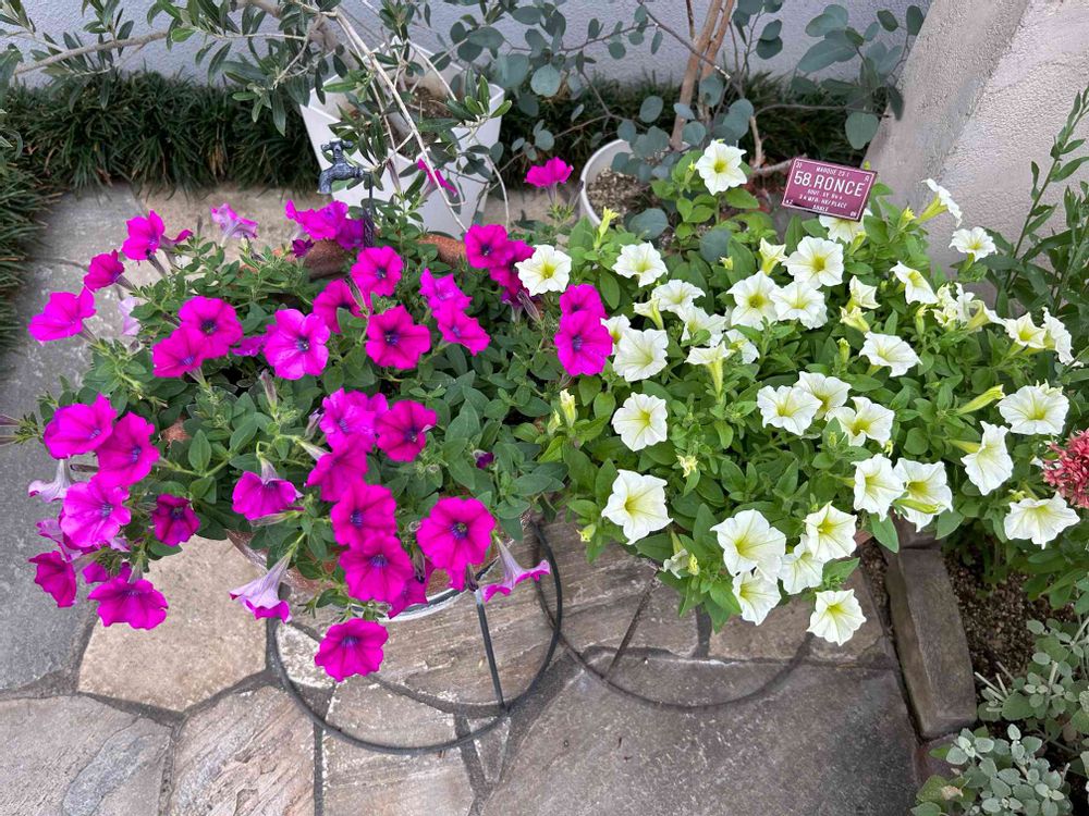 サフィニアパープルミニと、サフィニアイエローがやっとここまで咲いてきました🩷💛