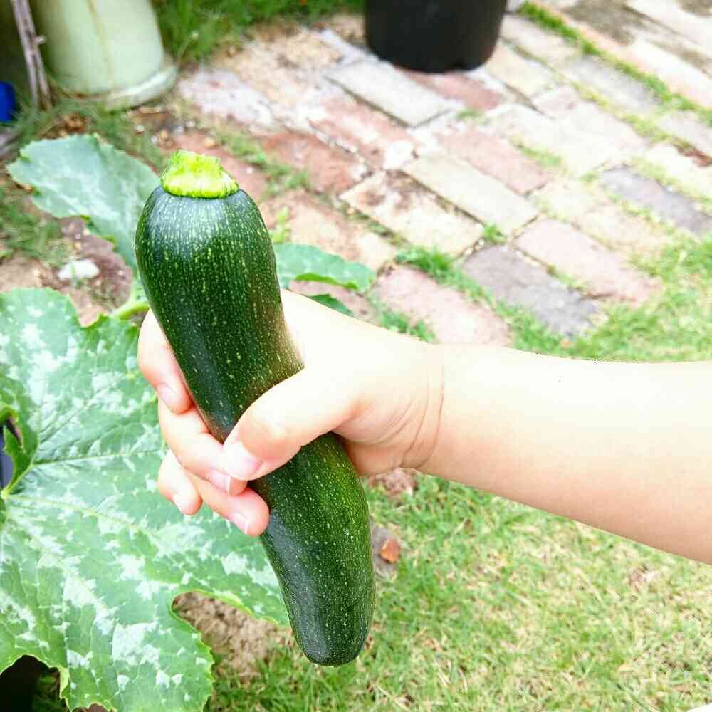 野菜嫌いな息子の食育の為が大目的の家庭菜園ですが、以前食べなかったズッキーニ食べてくれました😆💕