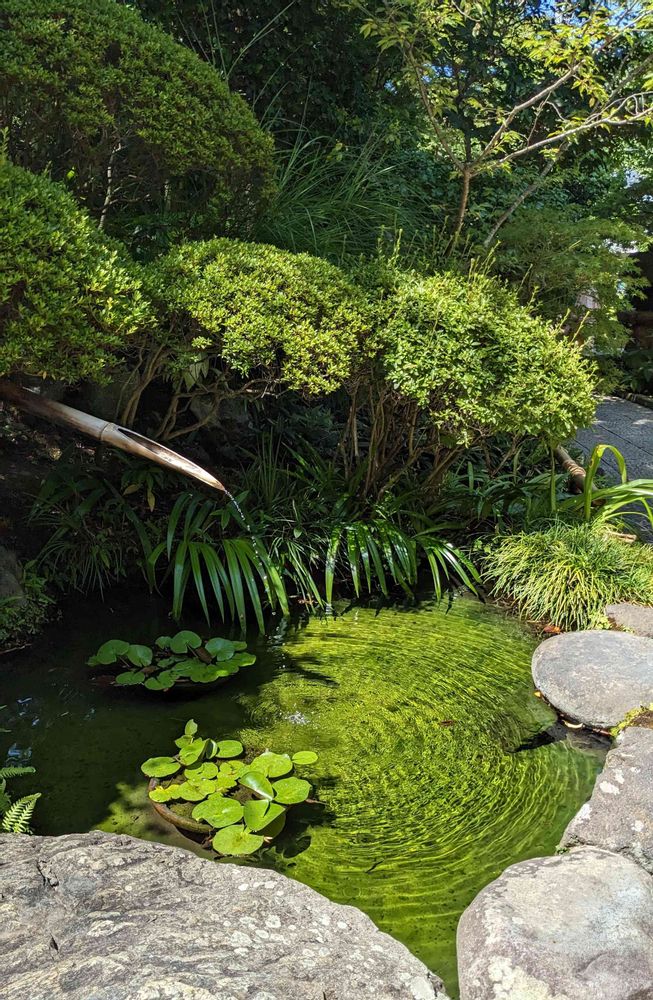竹からチョロチョロと池に落ちる水 風流ですよネ~🌀
