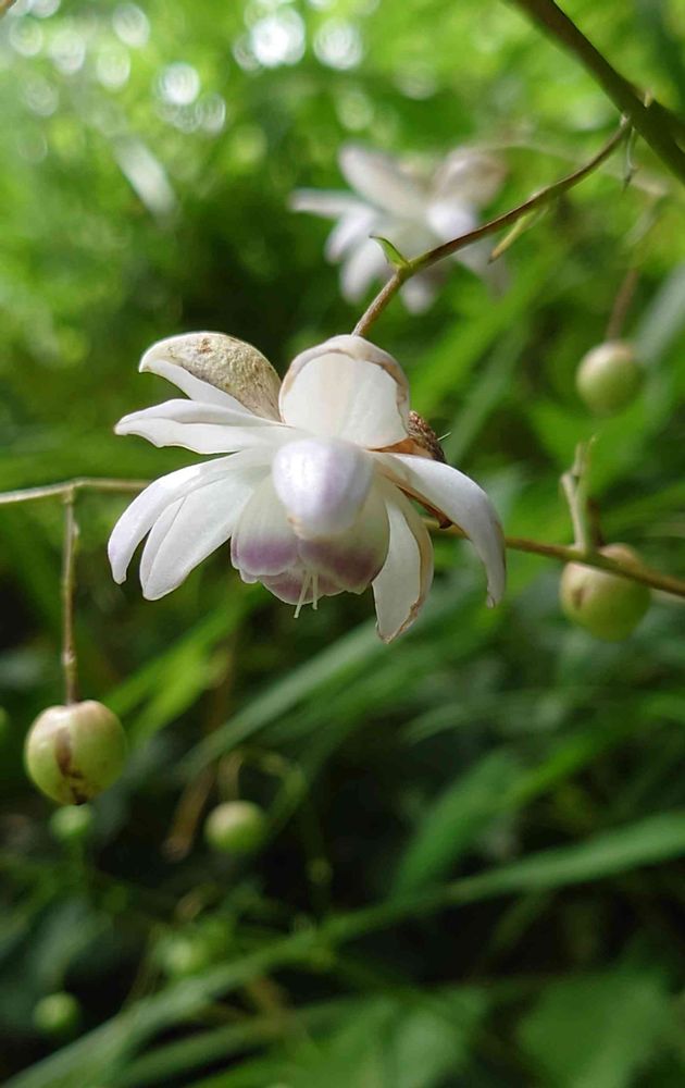 シャンデリアのようなレンゲショウマの花が風に揺れて綺麗です💜🤍🌿