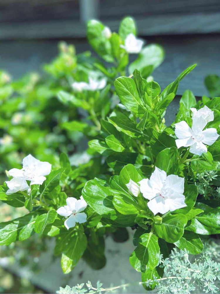 玄関,天使のビンカ エンジェルホワイト,ニチニチソウの寄せ植えの投稿画像