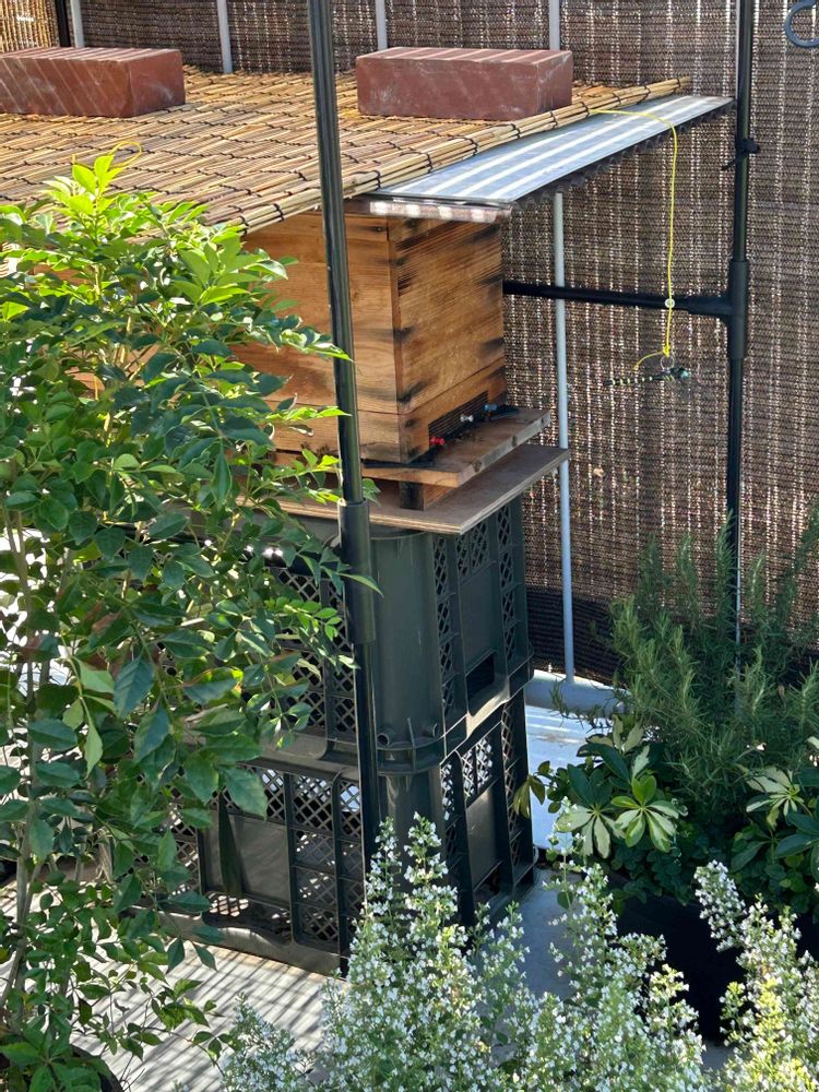 昨日友達の娘さんが屋上でニホンミツバチを飼っている所を見学させてもらいました。ハチミツも収穫できたようです。