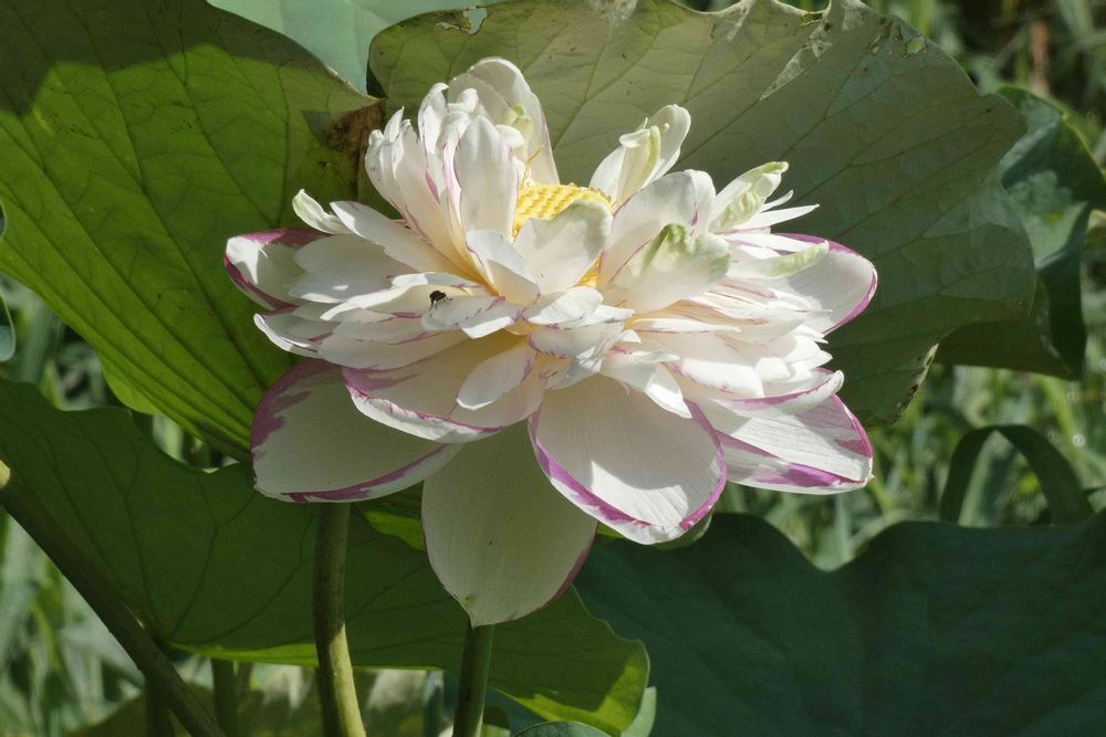 こちらも、お寺の境内で見掛けた赤いフチのある初めましてのハス🪷