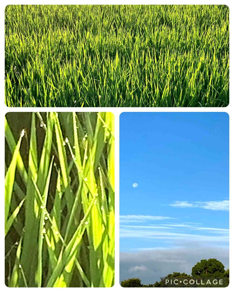 tomokoさんの月、朝の西の空,稲の朝露の投稿画像