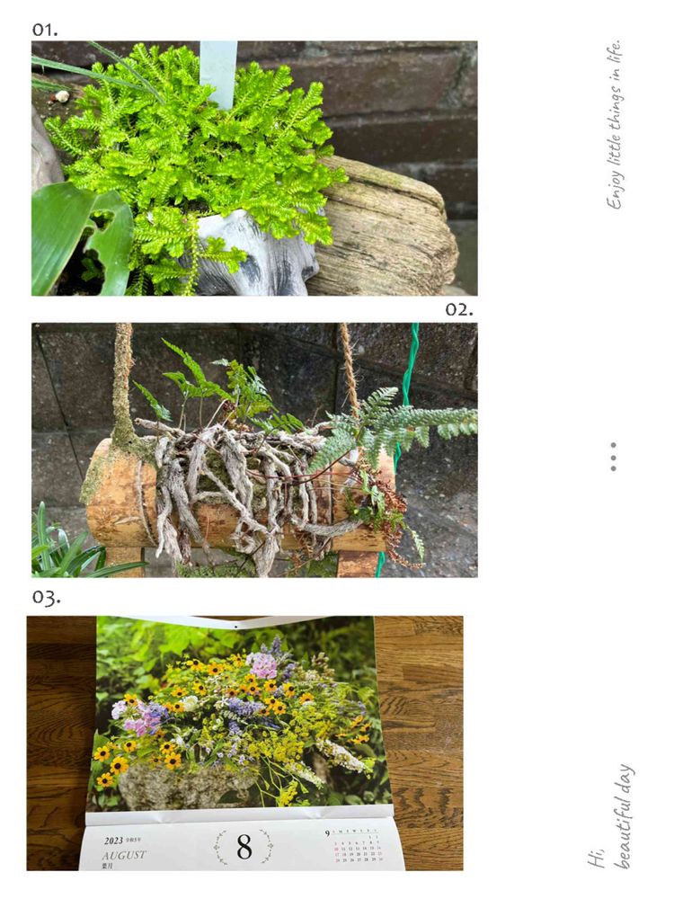 8月のカレンダー、ベニシアさんのお庭で撮影のアレンジフラワーです。