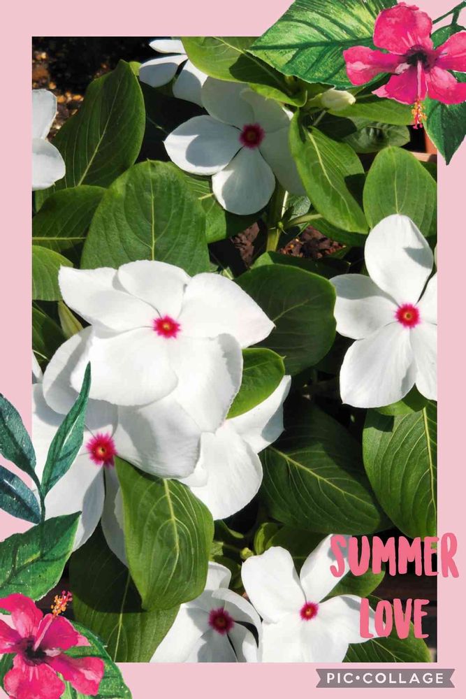 酷暑の中白い日々草が元気に咲いています。✨✨✨