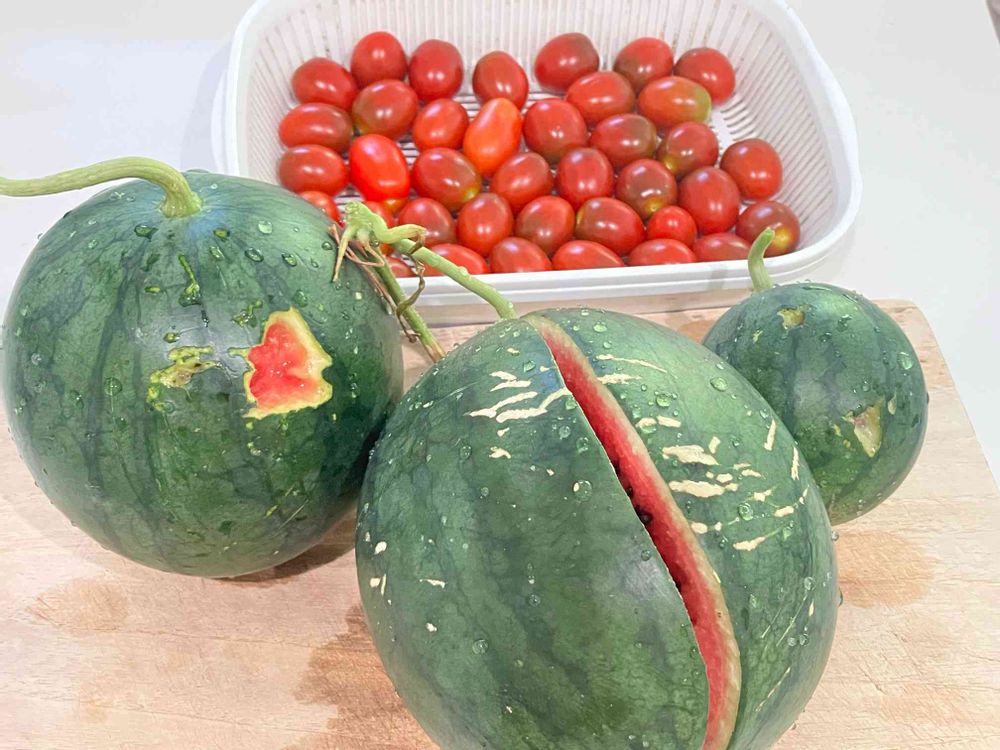 スイカちゃんが。。先日のゲリラ豪雨でパックり。。