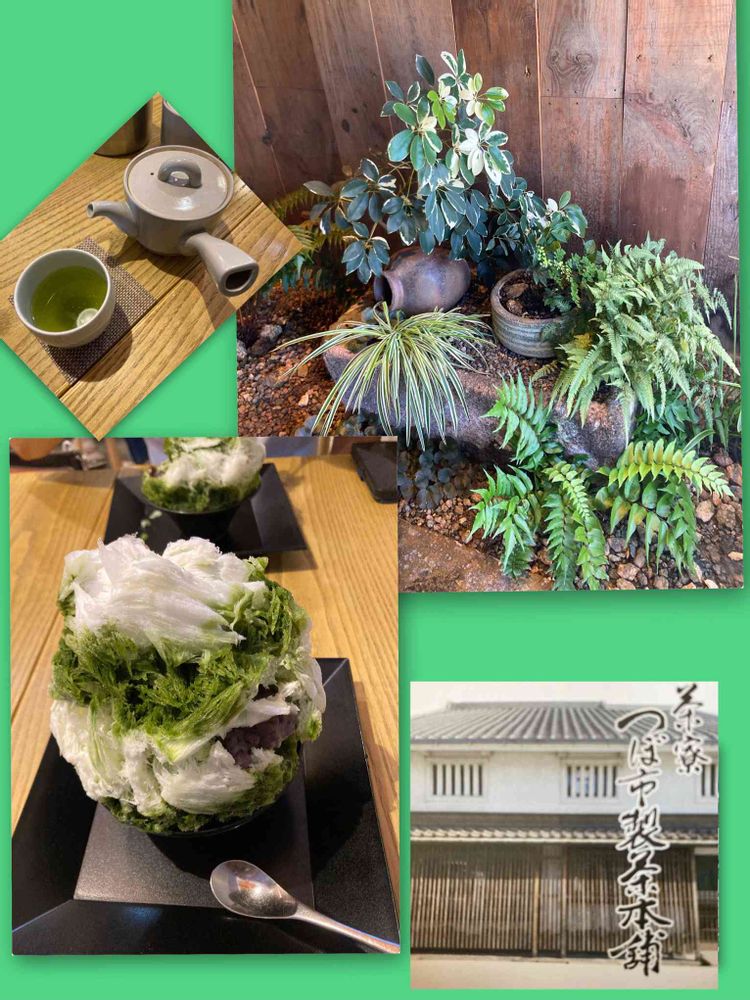 う〜ん😋緑茶も抹茶かき氷も〜美味しそうですね〜そして涼し気なシダの植え込み〜素敵な夏ですね