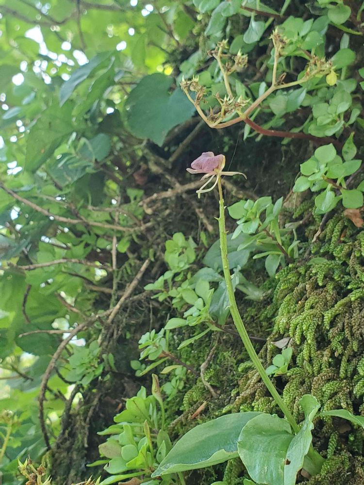 原生林の中の苔むしたブナやカエデの古木の樹幹に生える着生性の小型の蘭です。