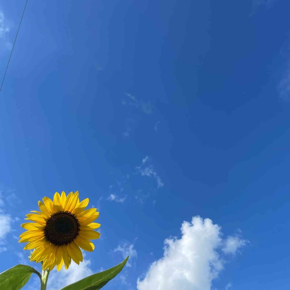 いっつもこのアングルやけど青空に黄色い花びらに緑の葉っぱの組み合わせ最高💙💛💚