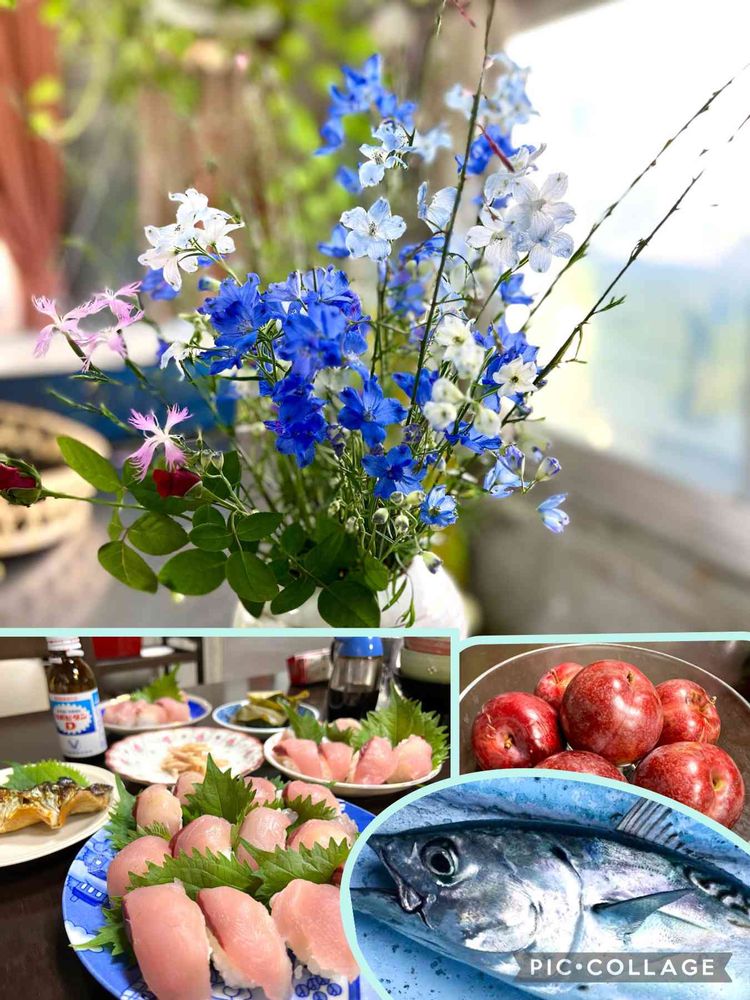 友人から(スマ🐟)を貰ったので刺身と🍣に…初めて食べたけどトロみたいに美味❤️一緒に貰ったスモモも凄く美味しい😋もう〜シアワセ🥰♡*・゜゚・*:.。..。.:*・'♡・*♪♡