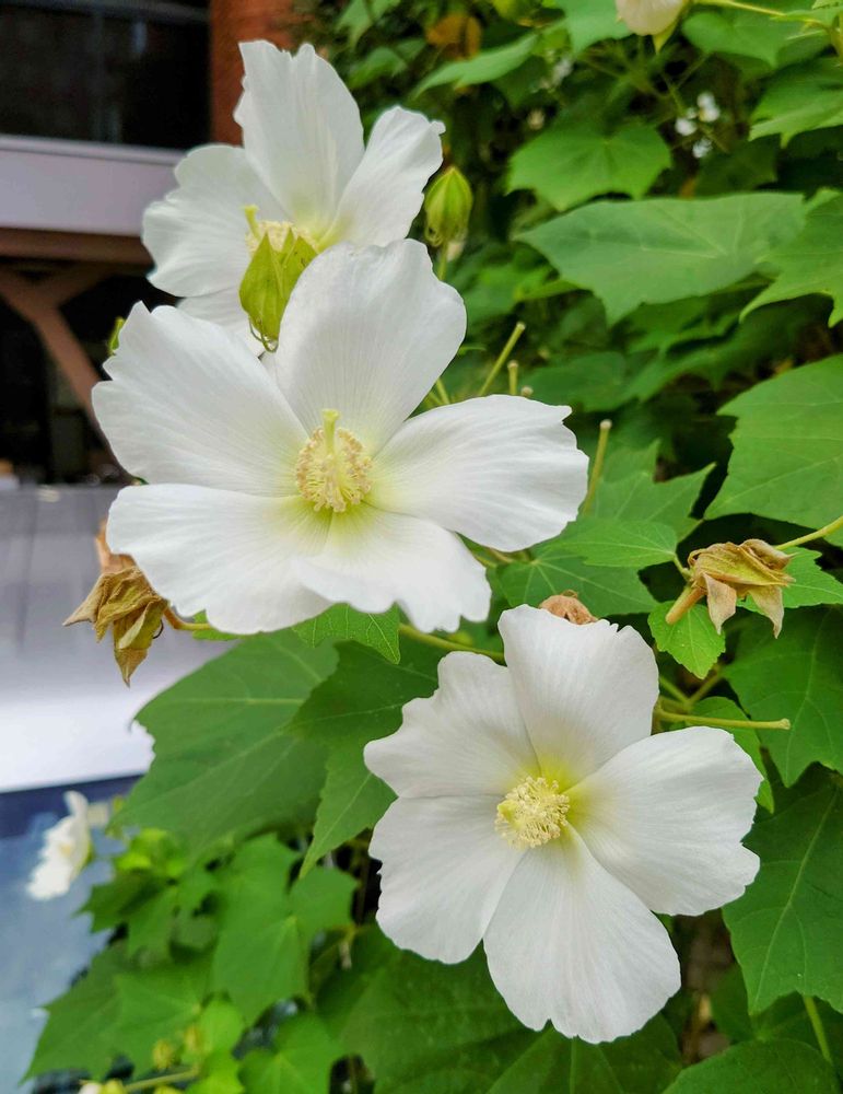 先日通勤途中に見つけた白い芙蓉が綺麗でした。