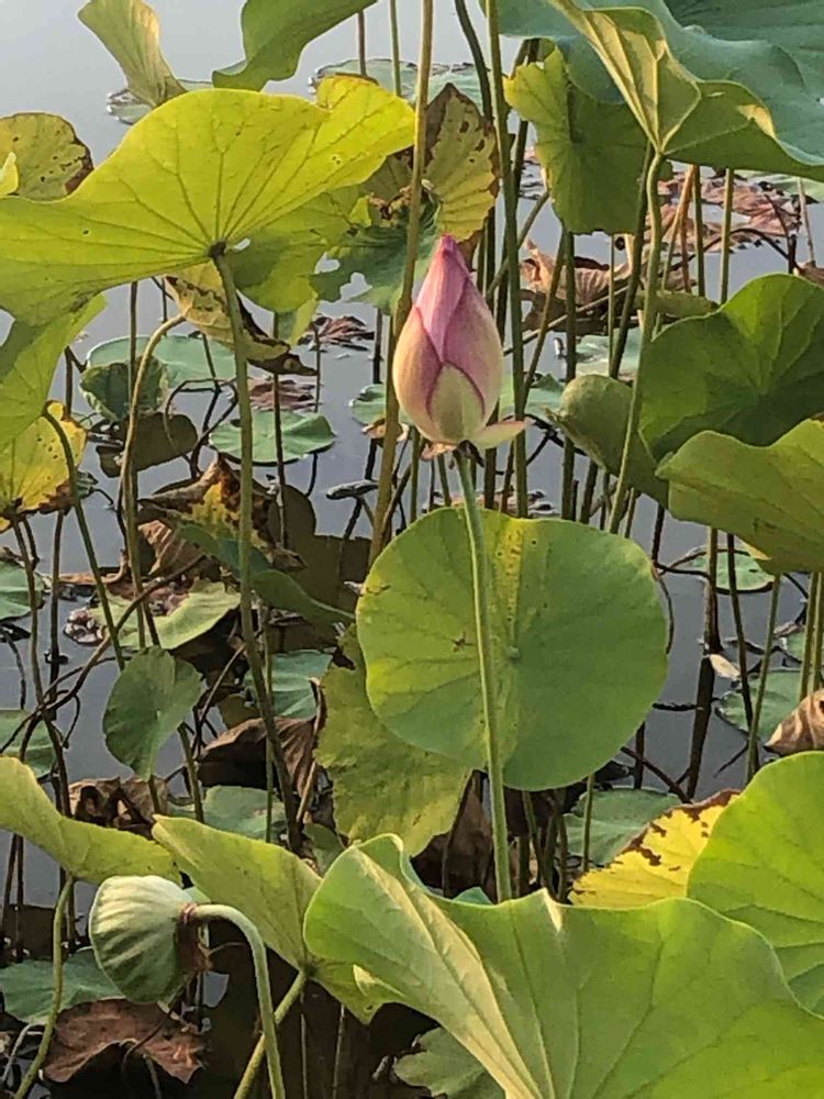 奥の方に葉がワサワサしているのが見えたので、近づいてみると、ハスでした。
