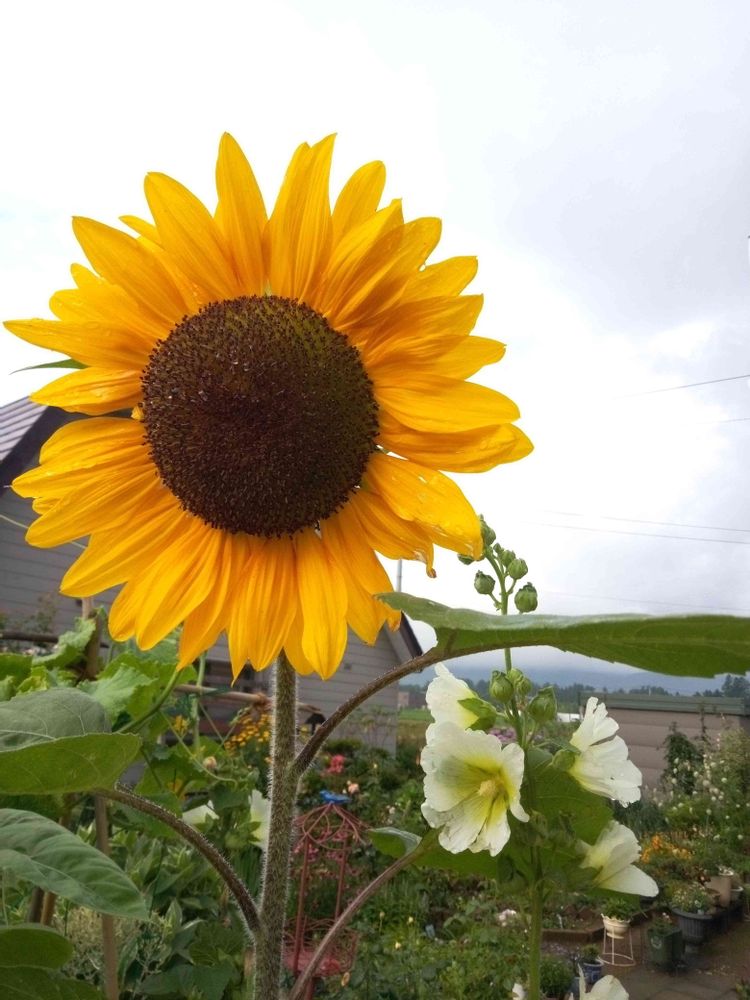 夏を彩る風物詩、ヒマワリ🌻とタチアオイとのコラボ