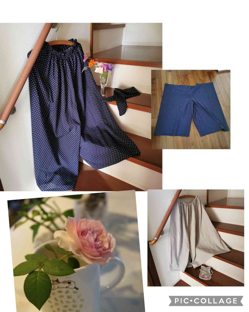 スカーチョ、ガウチョとも言いますか??お手洗い🚻がめんどうなので、今まで敬遠していたのですが、ネットであまりに簡単な作り方が出ていたので作ってみました。