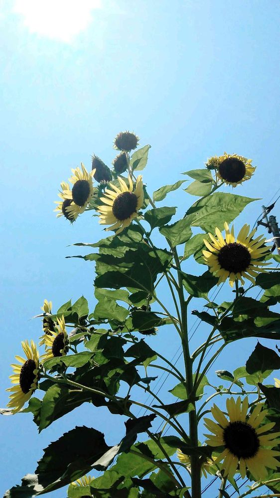 こんなに太陽が似合うお花は、ありませんね。青い空と黄色が、バッチリ👌ですね。