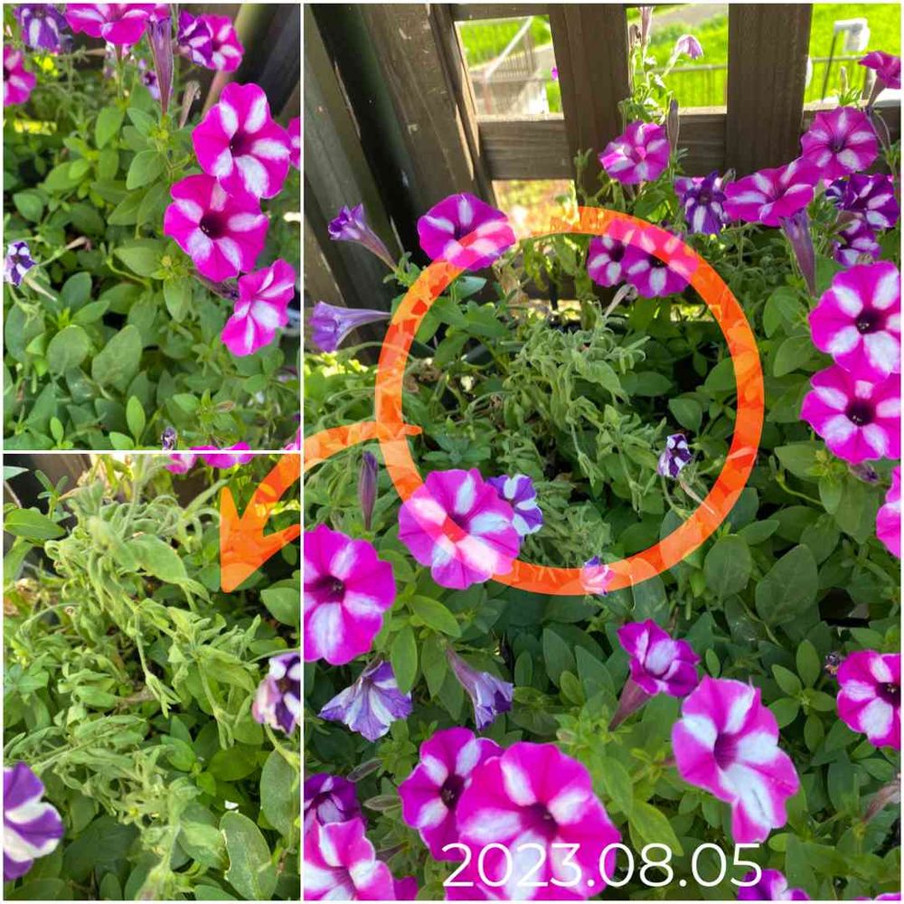 紫の方は、酷暑のせいで枯れ気味。根がやられたような萎れ方してます。