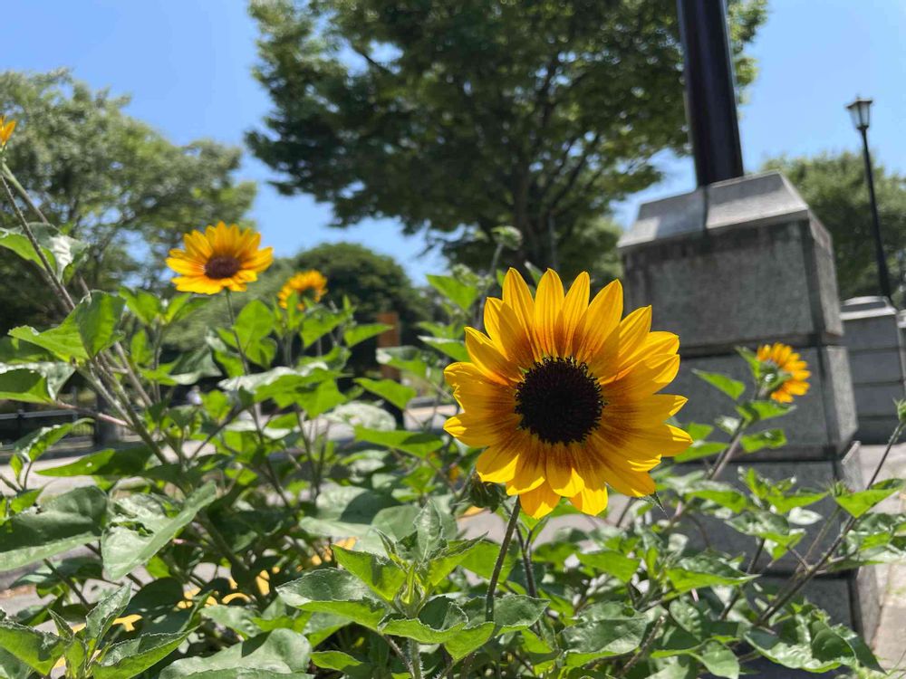 と声かけているかのように迎えてくれた公園のひまわり🌼