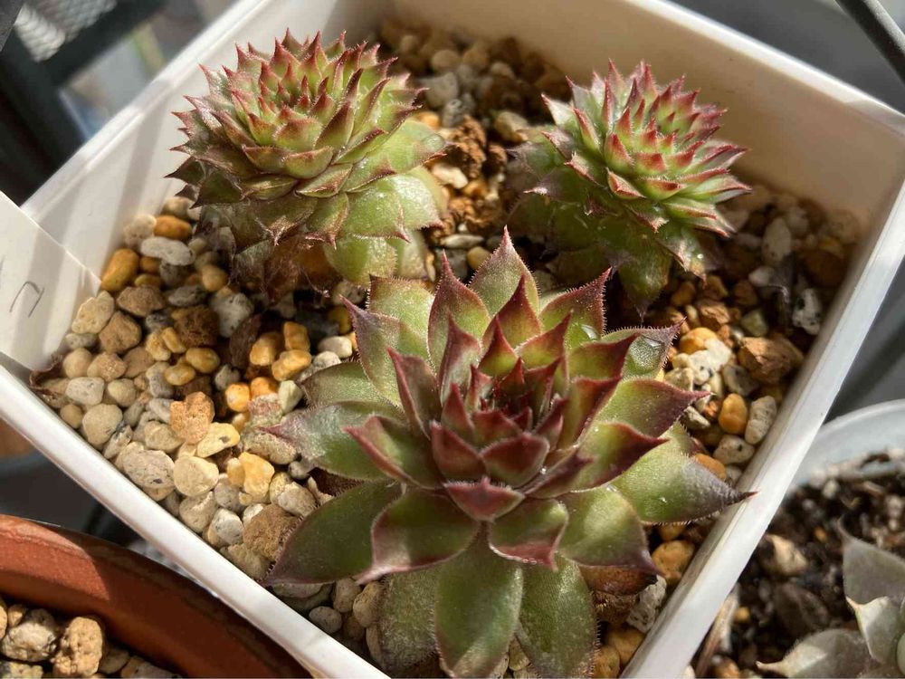 狭いベランダですが、多肉や草木を植えて楽しんでいます。お世話をしていると癒される〜
