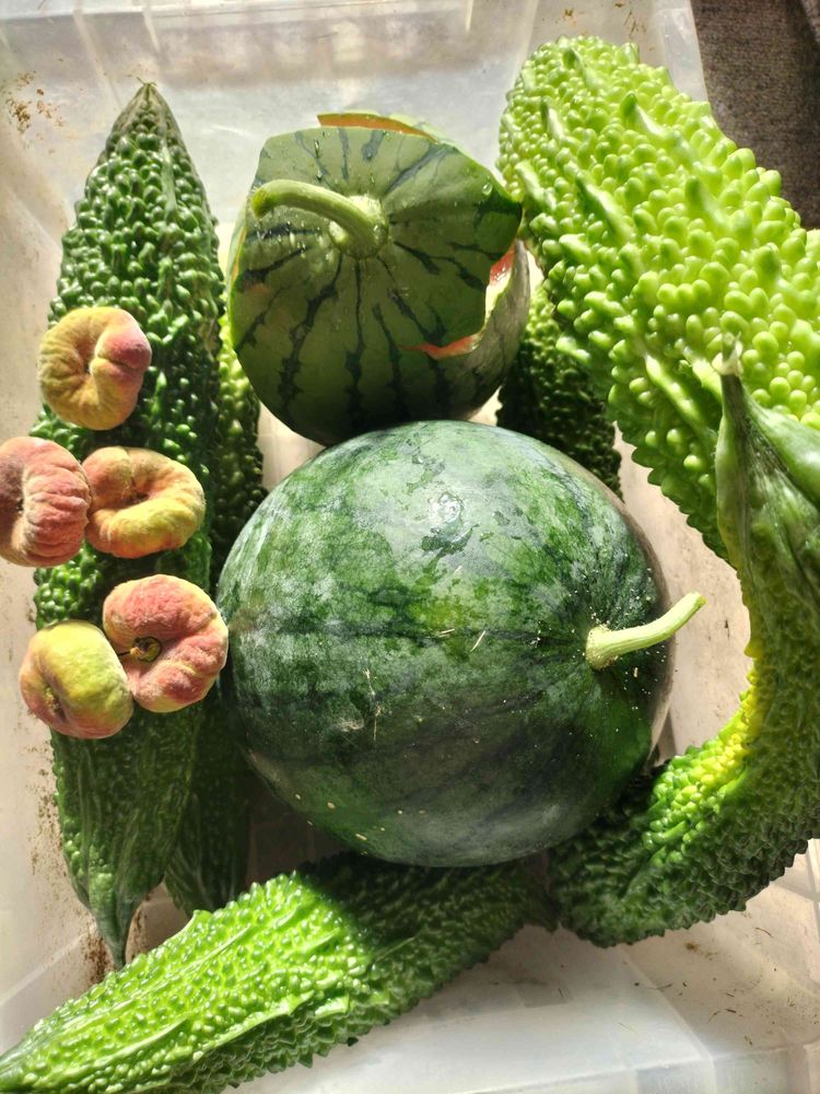 本日の収穫 ピノガールは、なぜかパックリ割れてる カラス除けしてあるのに。蟠桃は、木がグラグラで実が小さいまま萎れてる
