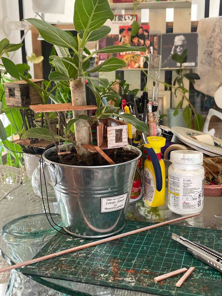 百均やら、 ホームセンターで売ってる 一番小さい観葉植物に、 ちっさい家、作ったりしてます。 ちっさい家用の家具も作ります。 窓にお弁当のふたとかのプラ貼って ガラスっぼく…電気もつきます💡