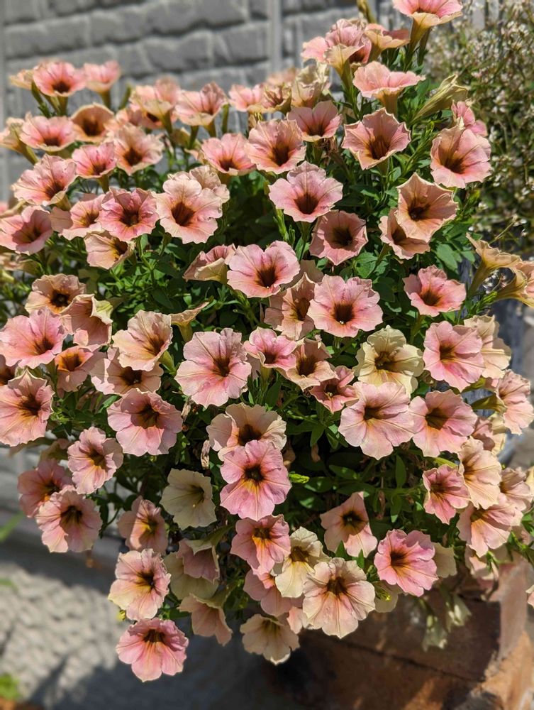毎日の暑さで、元気に咲いてるお花も少ないなか、頑張ってくれてるペチュニア ステファニー😊 カットしてないので、枝垂れて咲いてます。