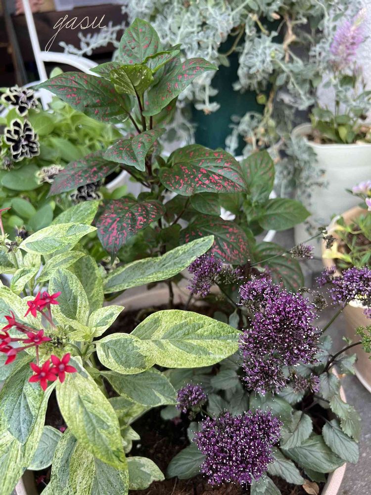 斑入りペンタスは最初の花が終わりかけなので全体的に寂しい感じもありますが、リーフ寄せと言うことで良しとします🙄