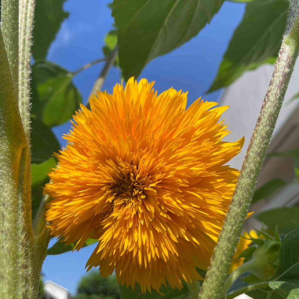 花びらが密集していて珍しいひまわりさんですね🌻🌻🌻