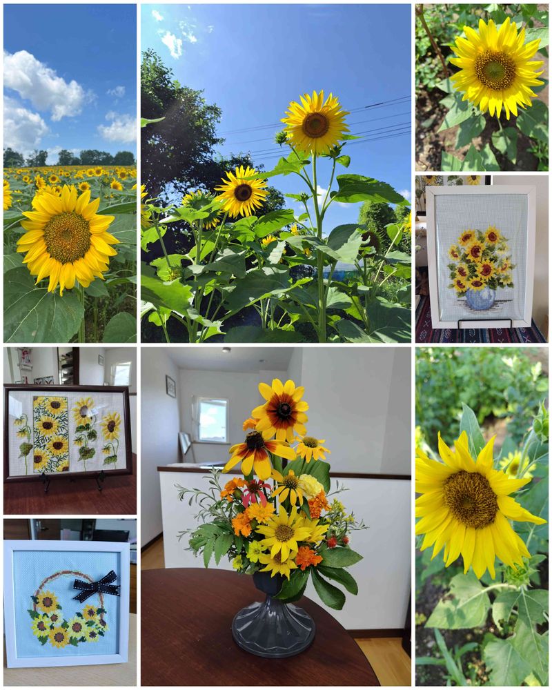 左上↖のだけ、娘から送られてきた北海道の向日葵🌻…残りは家の向日葵🌻です💦