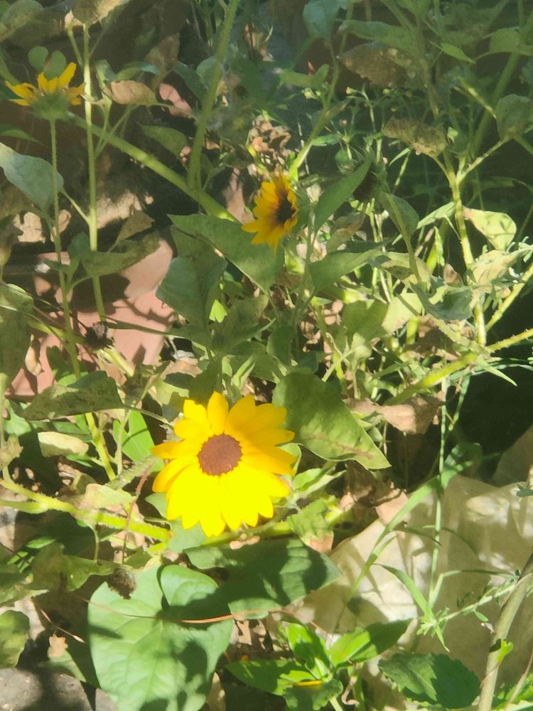 百輪咲きとか言われて植えてみたものの雨が降らないので息も絶え絶え〜本当は種が食べられる大きな向日葵が欲しいが最近は品種改良で種が出来ないヒマワリのほうが多い様な気がする 休耕対策のヒマワリの種を何処かで手に入れなくては