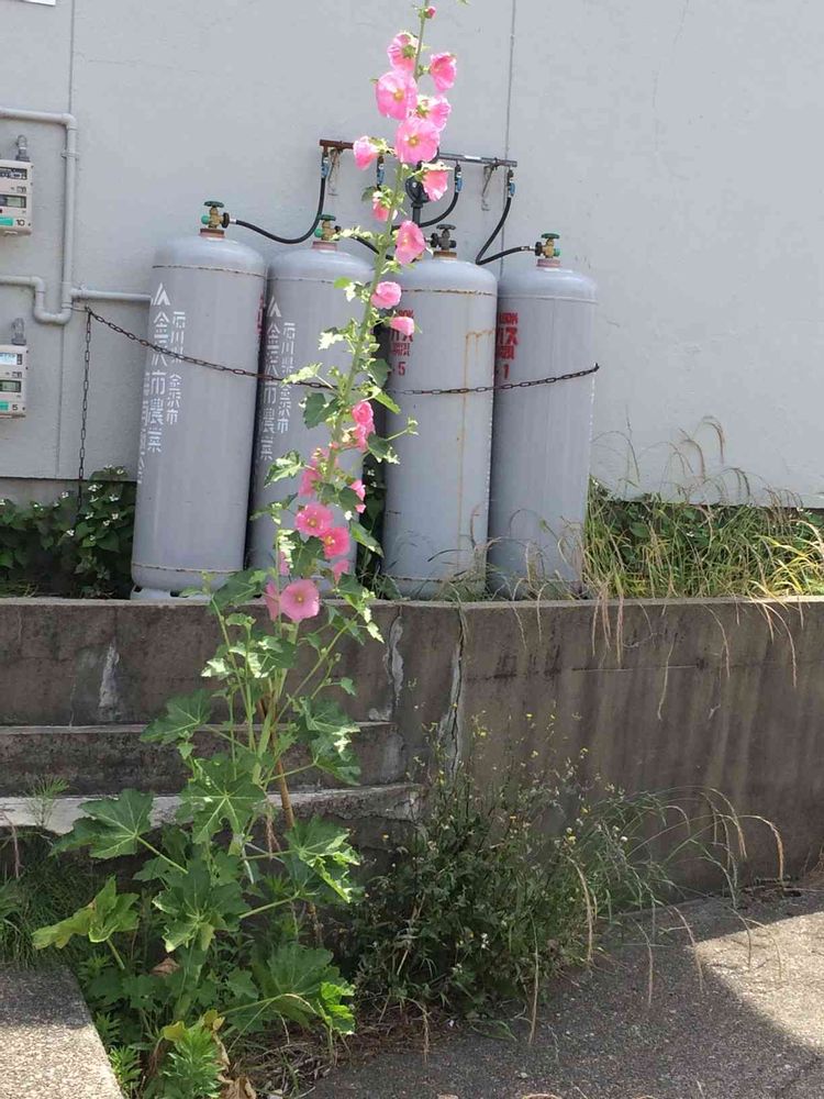 夏の訪れを暗示させるような野生のタチアオイがアスファルトの隙間からたくましく成長していました。(*゚▽゚)ノ