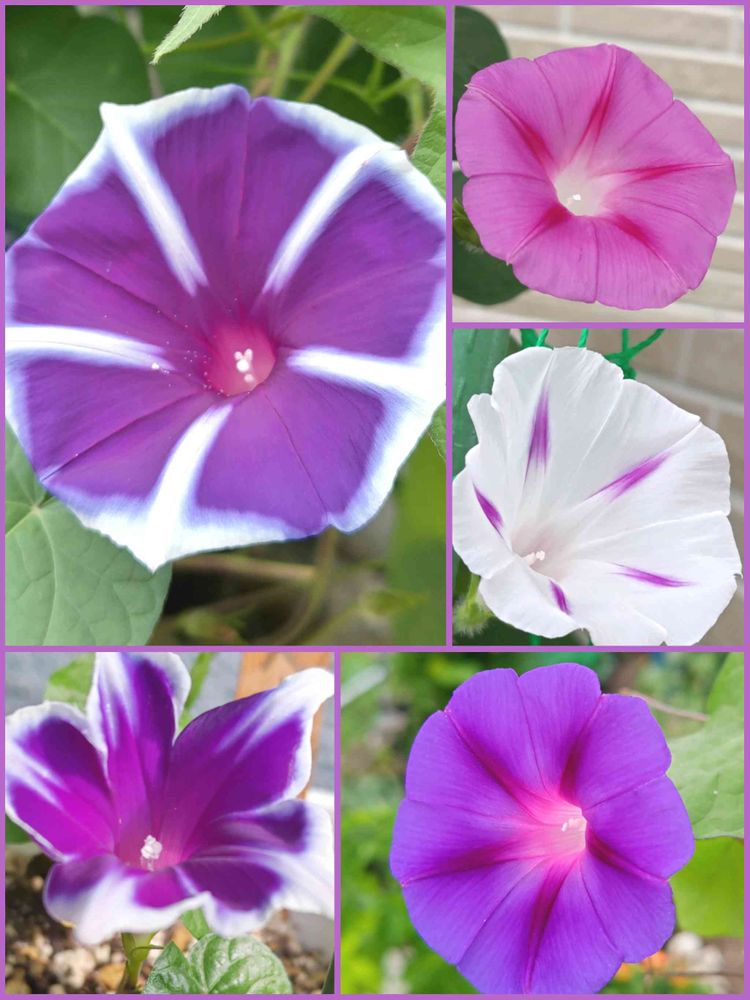 同じ朝顔でも色合いも違って楽しいですね🩷💜🤍