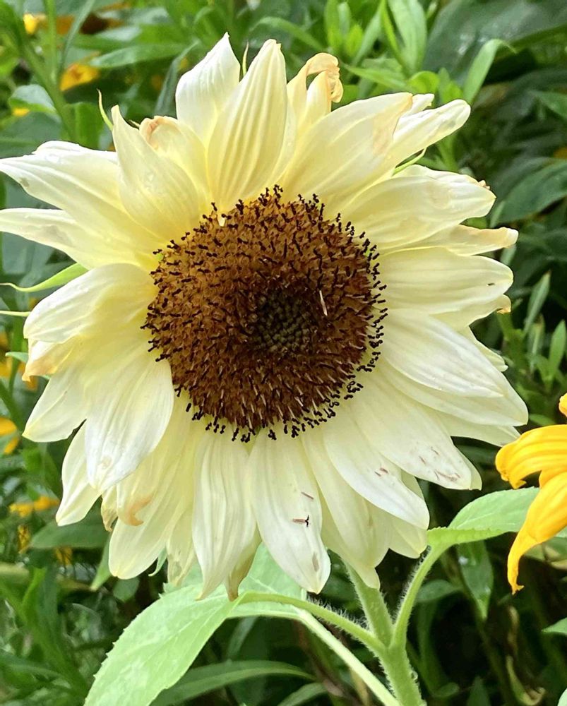 クリーム色の、ひまわり🌻は、珍しいので、種を蒔いて、育てました。
