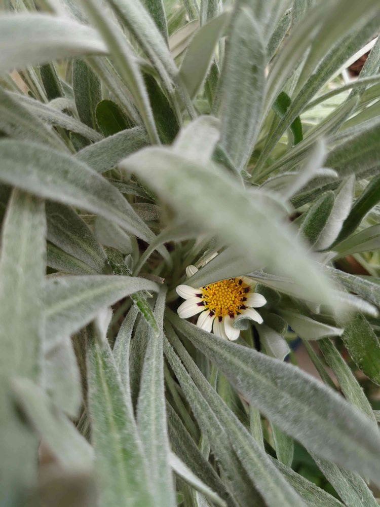 シルバーリーフのガザニアさん🌱最近はあまり咲かなかったのだけど、隠れて咲いてるのを見つけました(⁎˃ᴗ˂⁎)💕ちょこんと咲いてて可愛い(*´▽`*)🌼