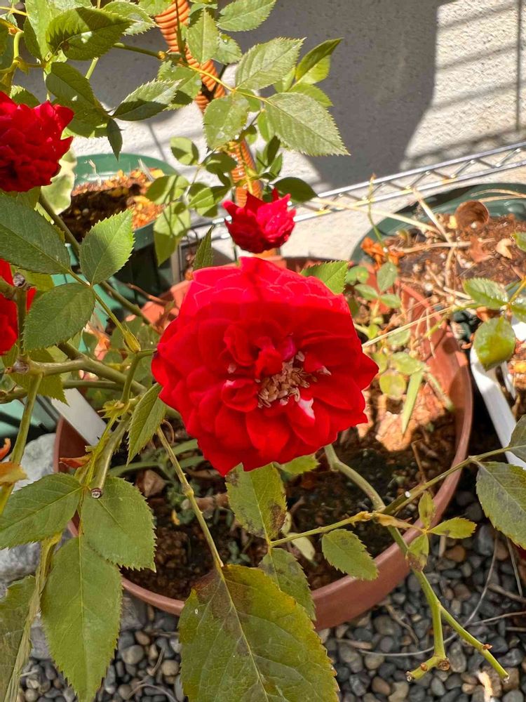 今日も暑いです🥵朝ジョグして水やり💦💦💦汗びっしょりです。ミニ薔薇🌹今年、3回目の開花です♪