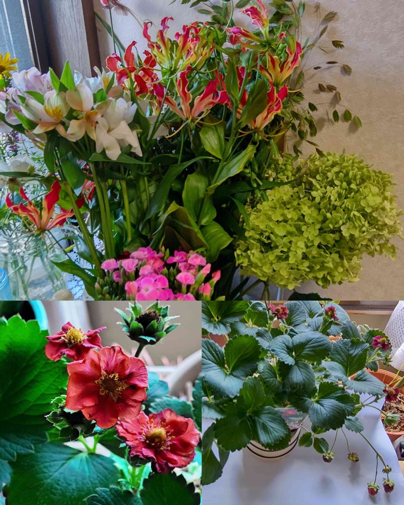 切り花と紅い苺の花を購入しましたよ🎵
